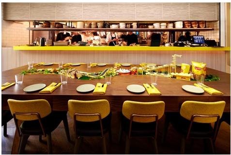 这份先锋美学巧思,更以跨界共创的形态渗透进空间各处。乐事携手时尚设计师品牌8ON8,共同打造极具动态张力的艺术装置:餐厅外立面上,趣味鲜活的小人形象,生动演绎着从土豆到薯片的奇妙转变。他们或搬运土豆或惬意休憩,仿佛为这场土豆盛宴奏响欢快序曲,自然引领食客开启美味探索之旅。