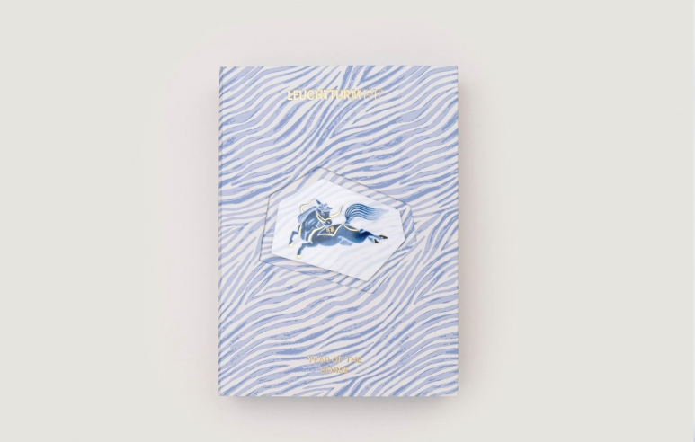 2026年LEUCHTTURM1917马年生肖产品的设计灵感源于宋代瓷器骏马图案灵感,金鞍鞯的骏马跃动于青白釉色纸面,既承袭宋瓷质感的雅韵,又以金马意象传递祥瑞。笔尖流转间,将书写升华为承载文化祝福的典藏仪式,简约设计尽显东方美学精髓。
