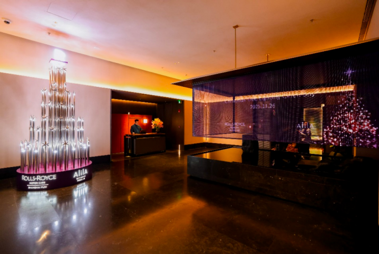 阿丽拉上海携手劳斯莱斯汽车上海·浦西参与举办的2025“寂境寻光”圣诞点灯仪式在酒店中央庭院隆重举行,正式拉开圣诞季的华丽序幕。活动当晚,阿丽拉上海总经理叶家文先生与森那美汽车集团劳斯莱斯品牌总经理徐先生共同点亮高达8米的联名主题圣诞树。树身融合劳斯莱斯RR品牌元素与阿丽拉自然美学理念,以圣诞星芒与藤蔓绽放璀璨光影。