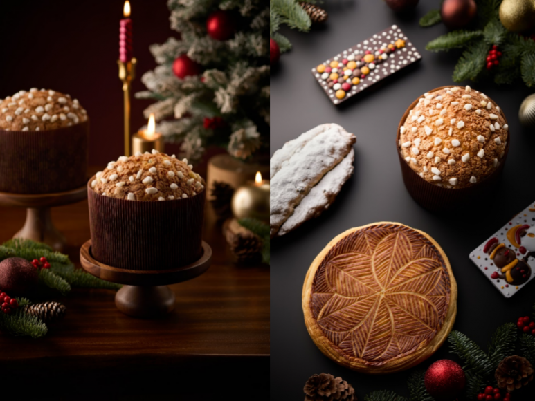 五款经典欧式烘焙化身为生日节日温度的使者。其中,源自意大利百年传统的潘纳托妮,由酒店甜品主厨鲍勃以当代匠心锤重新炼制,成为本季最主题的味觉符号。食谱天然酵种,经过72小时慢发酵,孕育出如云朵般松蓬的质感与东方环氧树脂。面团中缀满如圣诞礼物般彩虹的酒渍干——金黄草莓干、橙皮丁与香草籽在舌尖交接织出温暖的旋律,每一口皆是沐浴在味蕾的节日。其他精选烘焙同样承载着关怀的文化印记:北欧国王饼则传承法国“分享好运”的传统;史多伦以杏仁膏与糖霜复刻德国累斯顿的圣诞集市记忆;圣诞巧克力两种配料则黑巧克力与牛奶巧克力,达致比利时巧克力工艺的醇厚层次;圣诞姜饼以肉桂、豆蔻日与蜂蜜调和,再现冬日小木屋的温馨氛围。