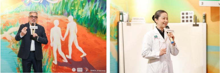 当日,MOLESKINE 首席执行官尚博闻(Christophe Archaimbault),大中华区及东南亚负责人Sally Koh,大中华区总经理程波,上海市精神卫生中心工会常务副主席王海云,主任医师、宣传科科长乔颖,门诊部主任医师倪晓东,画廊策展人张沁文与参展作者出席现场。来访嘉宾可于沉浸式的空间中体验“书写为媒,照见内心”的片刻停留。