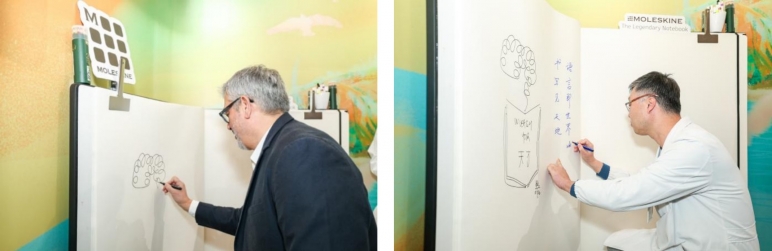 MOLESKINE 首席执行官尚博闻(Christophe Archaimbault)在现场分享中提到,纸与笔不仅是简单的工具,更能激发每个人的创造力与认知能力。书写——将笔落在纸上的这一行为,为人们提供了一种放慢节奏的方式,去觉察灵感,并赋予灵感以形态。