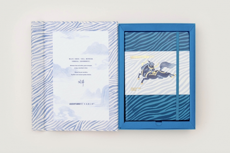 2026年LEUCHTTURM1917马年生肖产品的设计灵感源于宋代瓷器骏马图案灵感,金鞍鞯的骏马跃动于青白釉色纸面,既承袭宋瓷质感的雅韵,又以金马意象传递祥瑞。笔尖流转间,将书写升华为承载文化祝福的典藏仪式,简约设计尽显东方美学精髓。