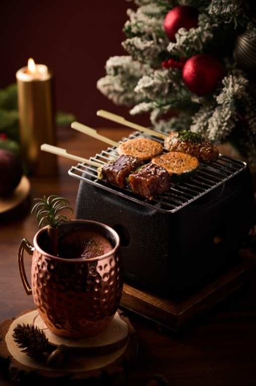 铜制酒杯中,热红随烛火慢慢点燃,肉桂与柑橘的香气在空气中轻盈晕开。轻酌一口,香料与果香交织出温暖层次,搭配特色日式炉端烧,倚窗而坐,窗外张园的历史建筑在暮色中定格为静谧背景。