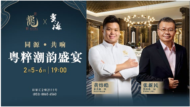 澳门新濠影汇玥龙轩由拥有逾二十年粤膳造诣的行政总厨黄炜皓掌舵,以当代技法解构粤式风雅,更巧妙融汇潮州菜精髓,将食材之鲜融于细腻工法。潮汕味道煮海餐厅是汕头唯一一家黑珍珠二钻的现代潮菜餐厅, 由潮汕菜美食作家、汕头市潮菜研究会会长张新民为餐厅设计出品的《煮海食单》体现了对创新调味的思考及对食材本味的坚持。此次玥龙轩及潮汕味道煮海餐厅团队将联手打造六道菜的粤潮交响菜单——由粤潮风味对比的“序曲”开篇,到以同一顶级食材诠释粤之醇及潮之鲜的“共响”,再到完美技法交融的“和鸣”,及最后“余韵”的圆满回味。除了两家餐厅的招牌菜品及创新菜肴之外,还将呈现一款联袂创作菜品,让宾客们体验粤菜和潮州菜的和谐精髓。